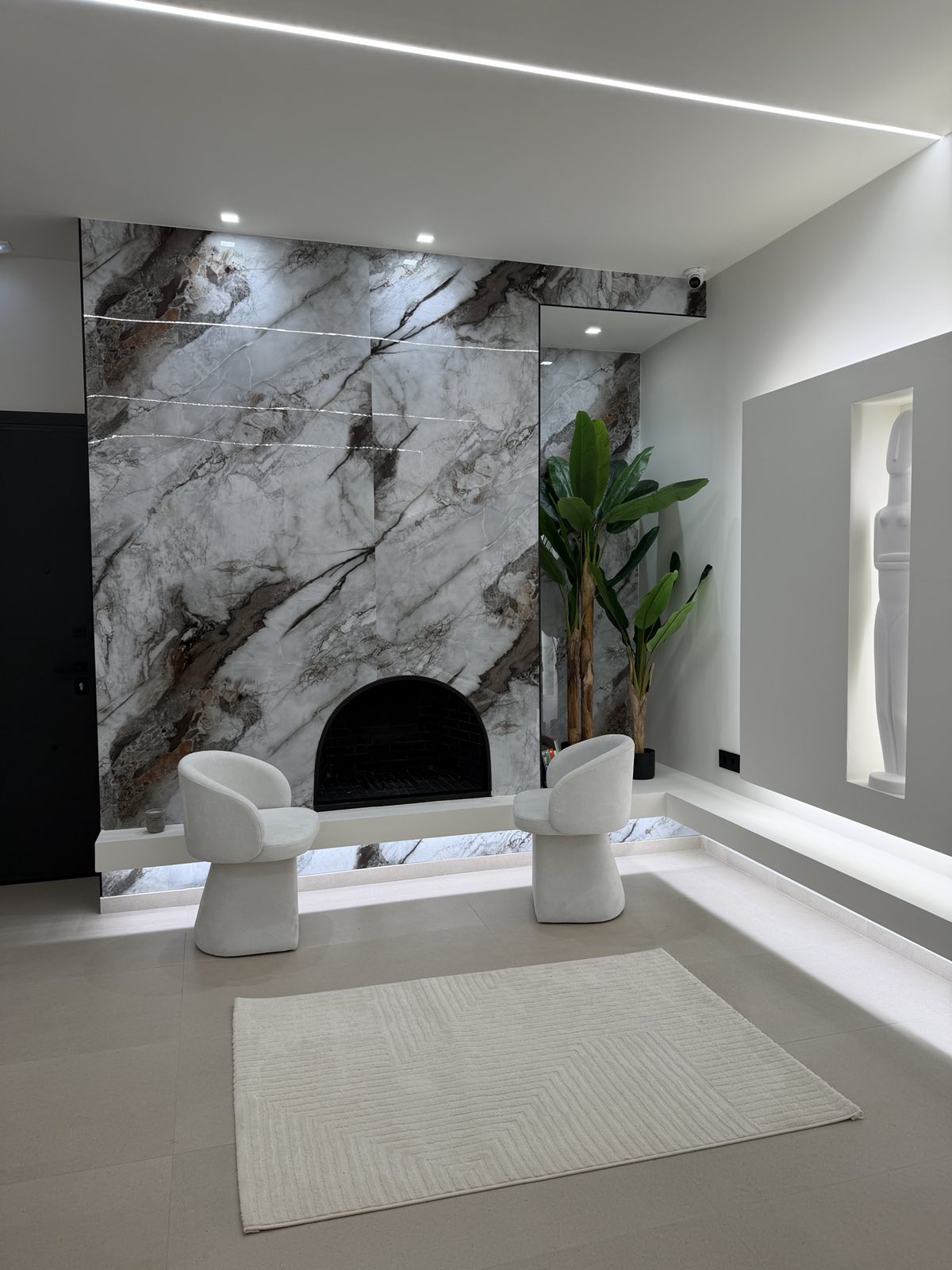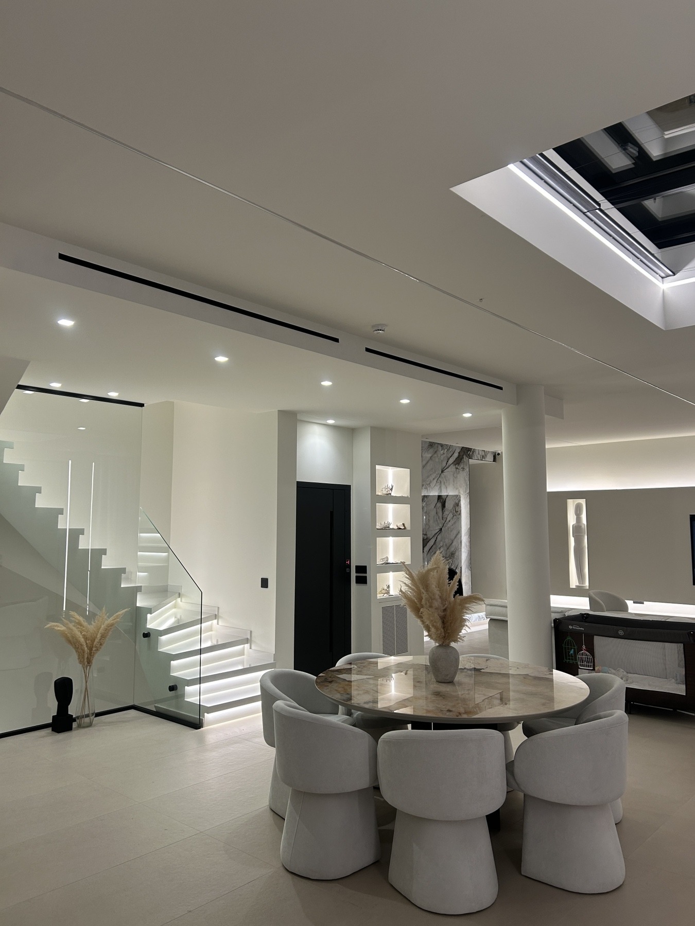 This distinguished villa for sale in Heraklion Crete includes an elevator servicing all floors, a solar panel, a heat pump system for cooling & heating, and an elegant fireplace, ensuring year-round comfort and sustainable living. Special attaention has been given to the lighting of the property as well as to all fittings and fixtures. Shopping facilities as well as the beach can be reached in 5 mins driving!