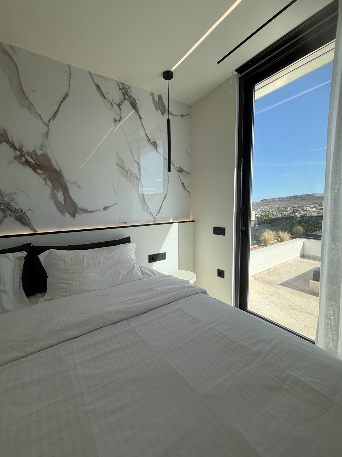 The upper 60m2 level hosts a luxurious master bedroom with en-suite bathroom and a second bedroom also featuring its own private bathroom. Both rooms open onto a spacious 60m² veranda with stunning views.