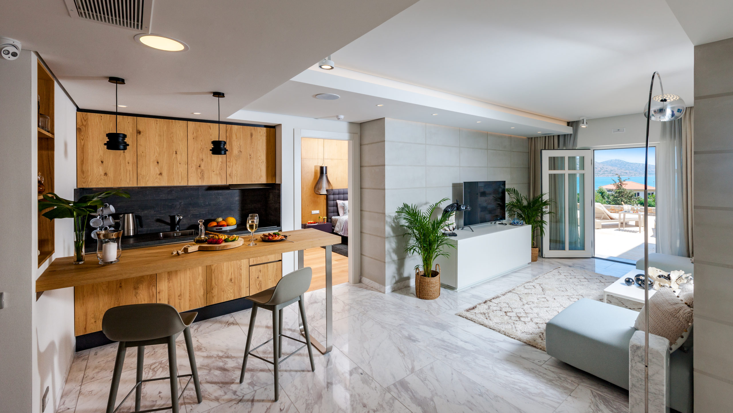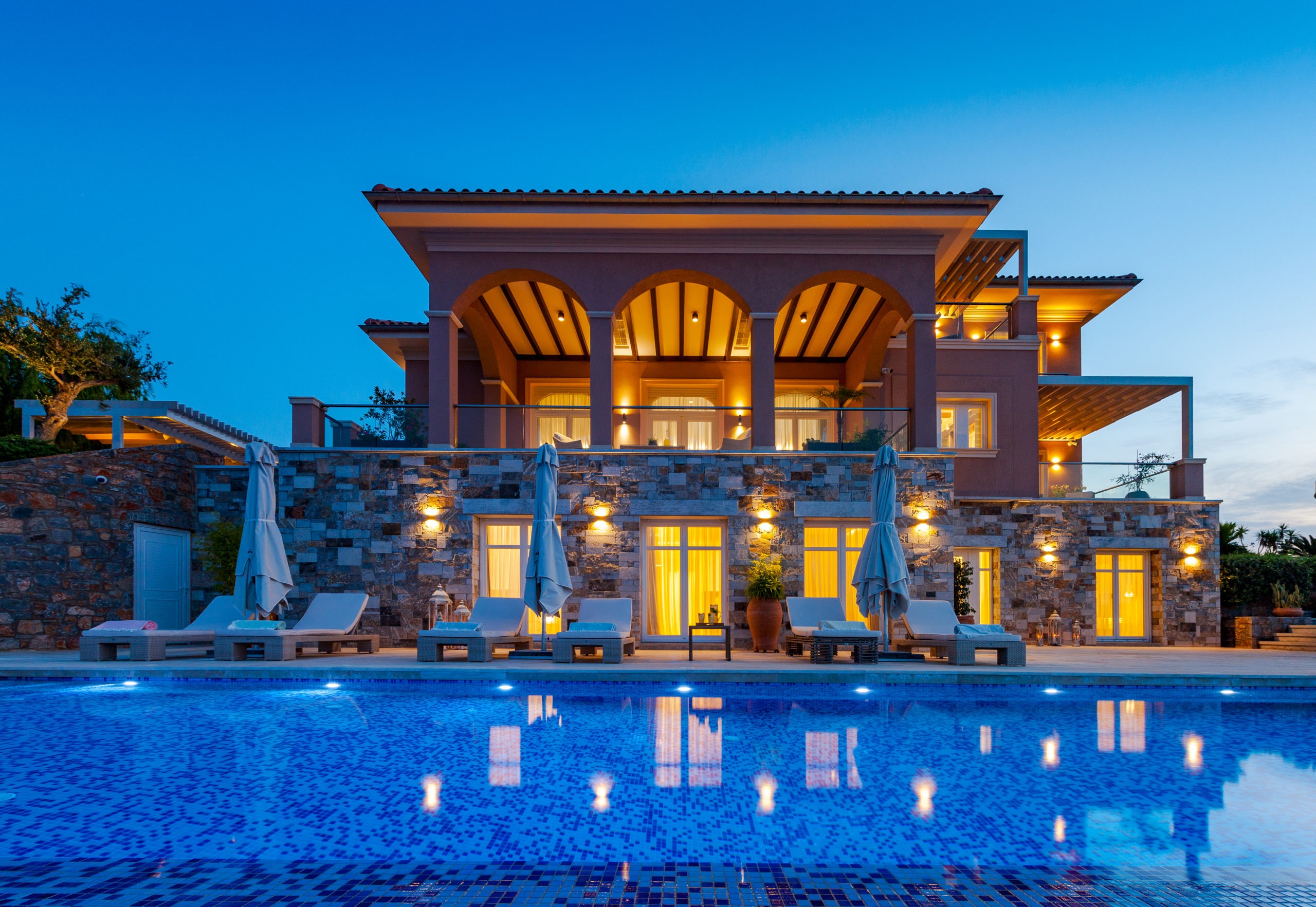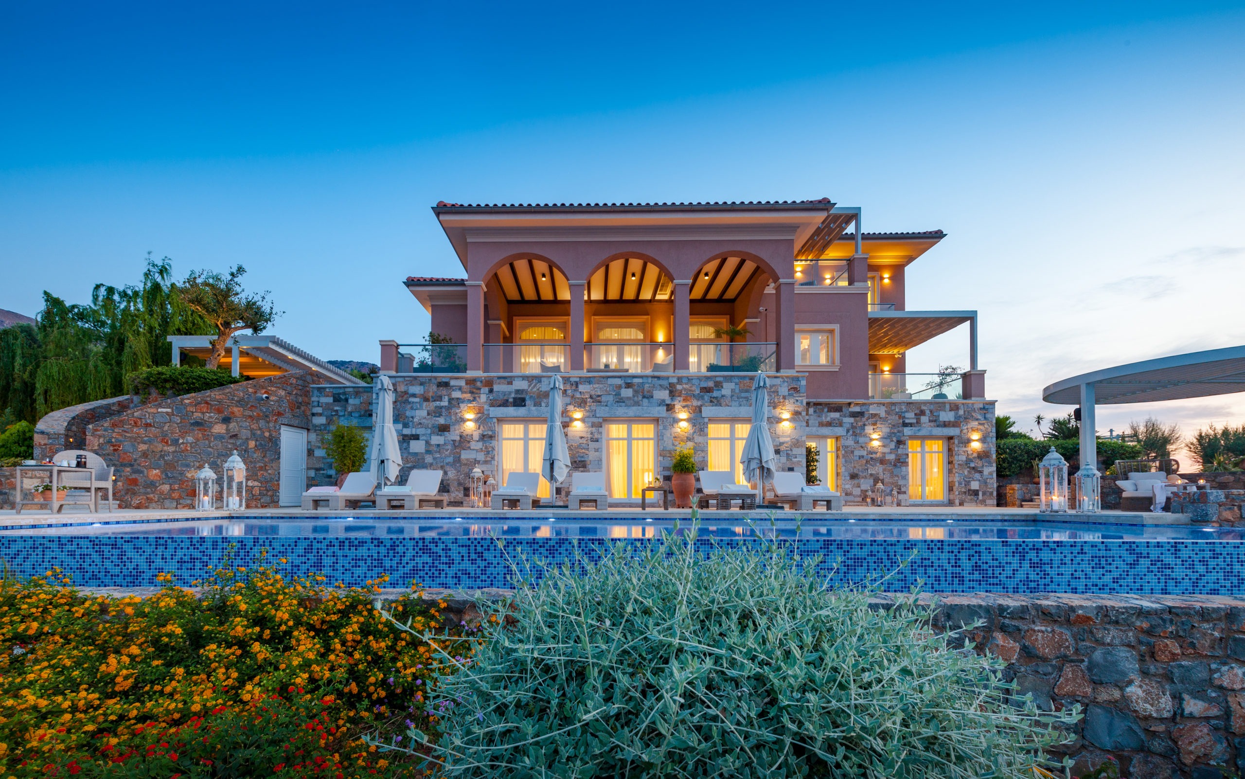 This stunning villa for sale in Crete, Greece, enjoys breathtaking panoramic views of the Mediterranean Sea, including the iconic Spinalonga Island. The villa has been luxurious designed with five spacious bedrooms, each featuring its own state-of-the-art private bathroom. The villa’s contemporary aesthetic is perfectly complemented by functional amenities, including air-conditioning and a heated infinity pool, ensuring comfort year-round. It has got the totalsize of 642m2, built on a plot of land of 4014m2.