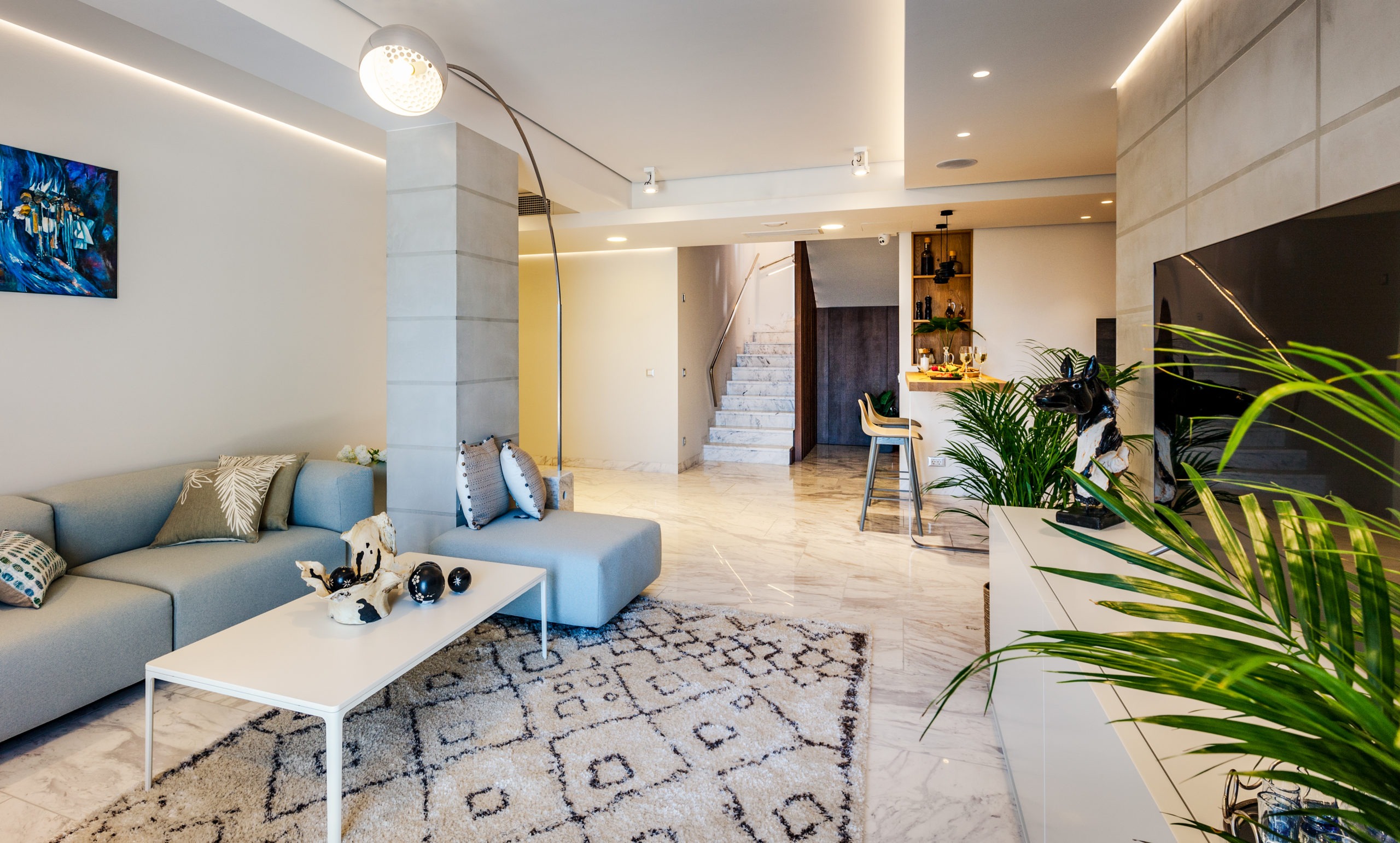 The expansive living areas are ideal for family gatherings, while the self-contained guesthouse adds extra privacy and convenience, complete with a fully equipped kitchenette and bathroom. Just 70 meters from the golden beaches of the Mediterranean, this villa offers an unmatched combination of luxury, accessibility, and stunning natural beauty.
