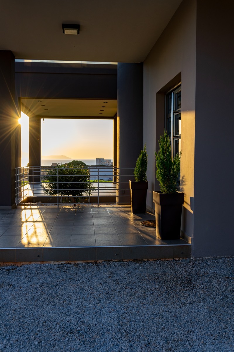 This high qualityresidence for sale in Chania, is set in the small costal village of Agios Onoufrios, on the Peninsular of Akrotiri. Its west orientation and its elevated spot guarantees astonishing views of the sea and the sunset. The property sizes up 200m² (plus basement), built on a 4000m² plot of land. It has been developed on 3 levels, and includes 3 bedrooms and 2 bathrooms. Additonally, there is a spacious basement with a garage and plenty of storage space. The residence has been equipped with an elevator for easy access between the different levels. The large plot of land has been partly lanscaped and there is plenty of space to build a swimming pool and outdoor facilities. The hiqh quality construction materials and the unique location are the main chracteristics of this residence.