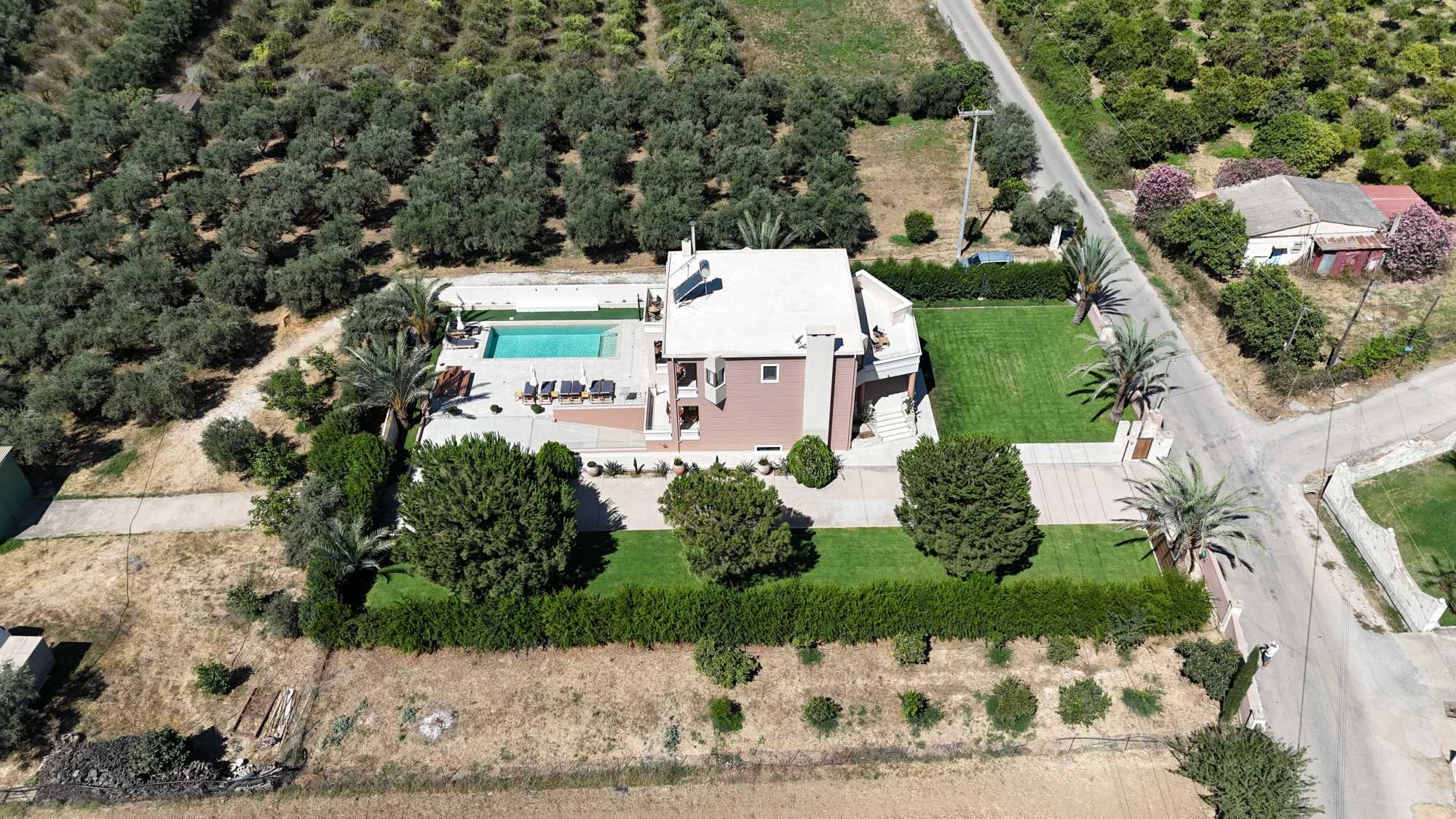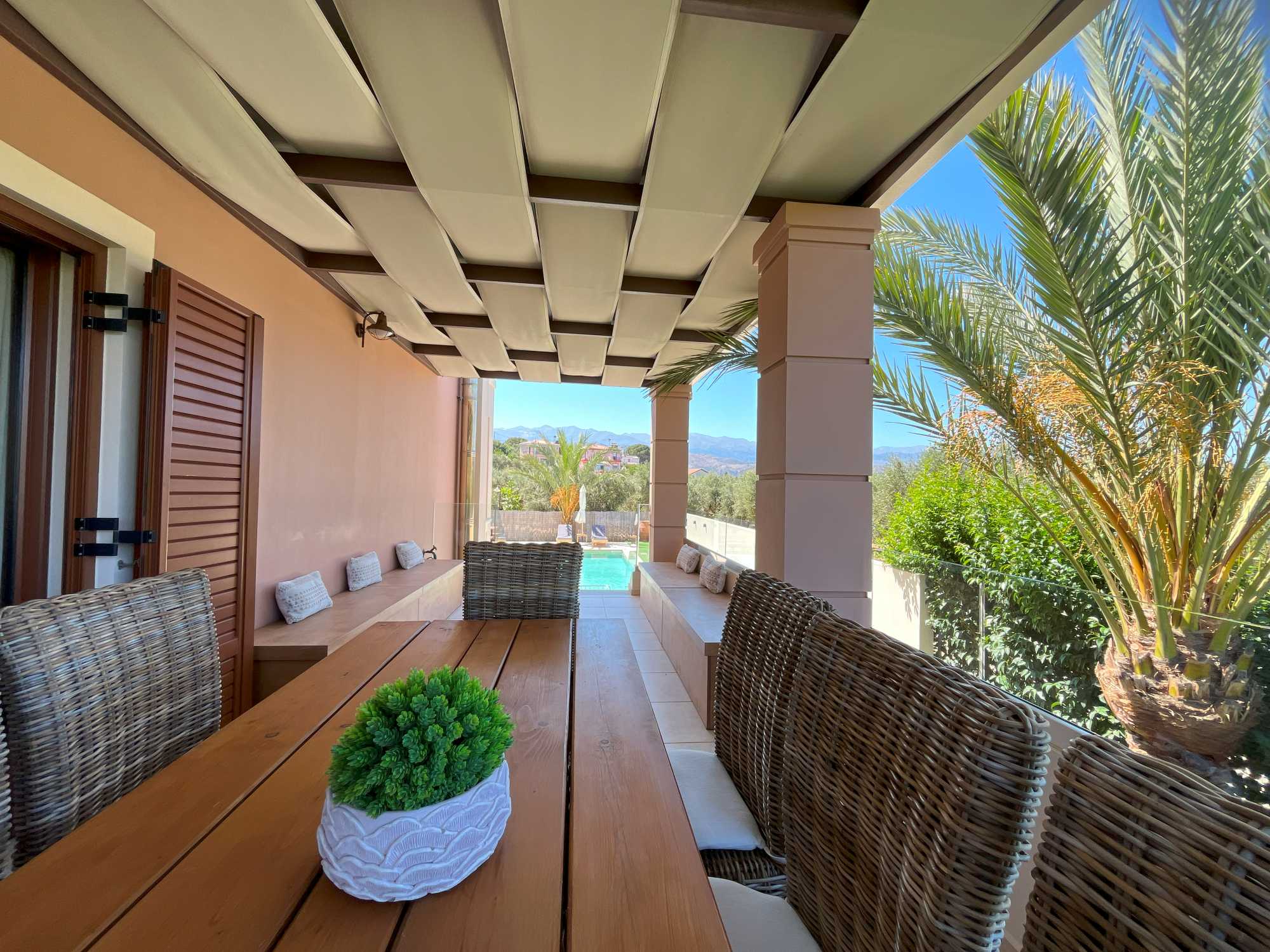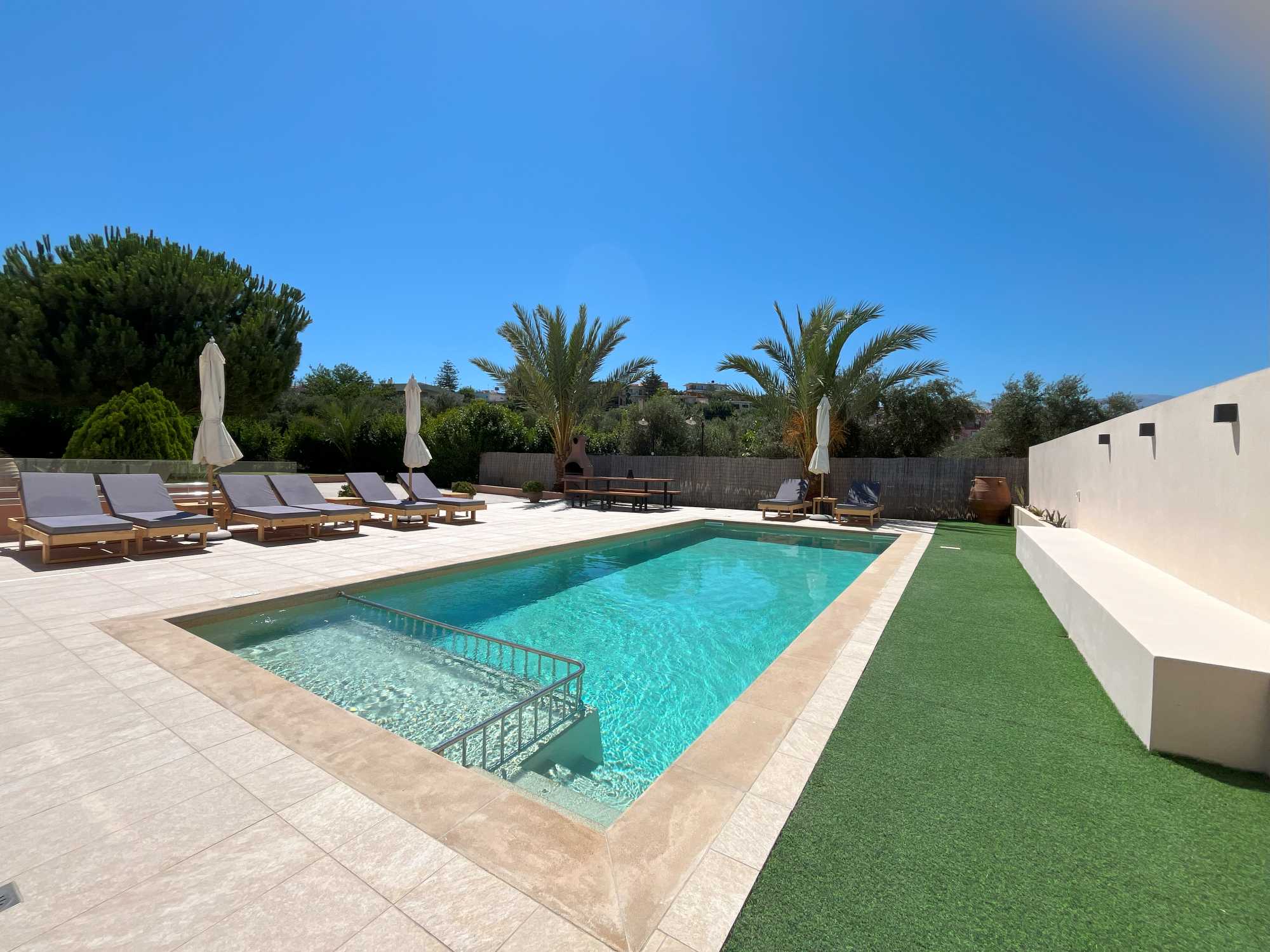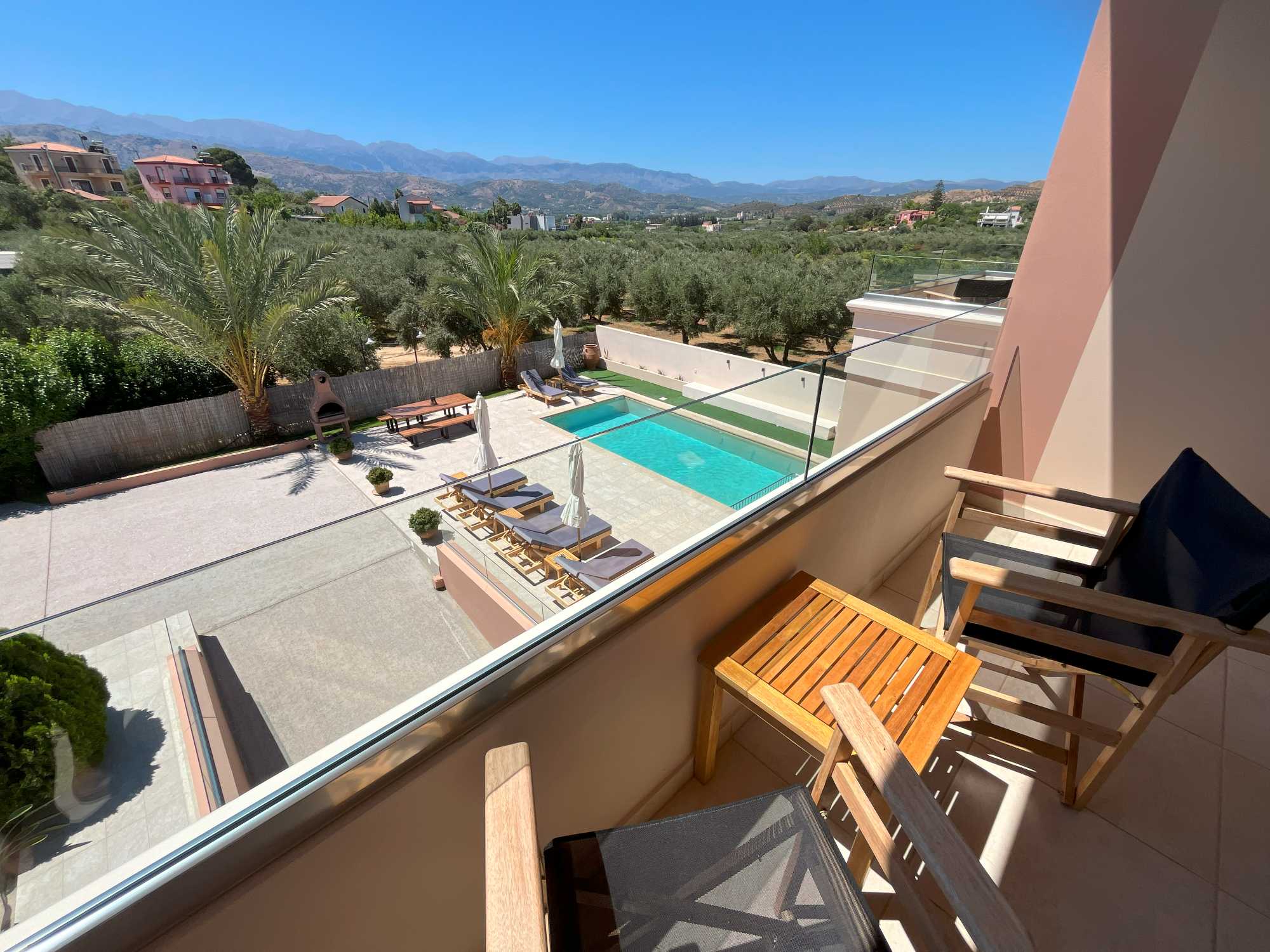 This exceptional high quality villa for sale in Chania Crete is positioned on an expansive 4,300m² plot, overlooking the mountains and offering privacy and tranquility in one of Crete’s most sought-after locations. The property features a spacious 200m² main house, including 4 bedrooms, master en-suite and 3 bathrooms with traditional Mediterranean architecture and a versatile 100m² basement that hosts the garage and provides excellent storage space and potential for conversion into a gym, playroom, or TV room.