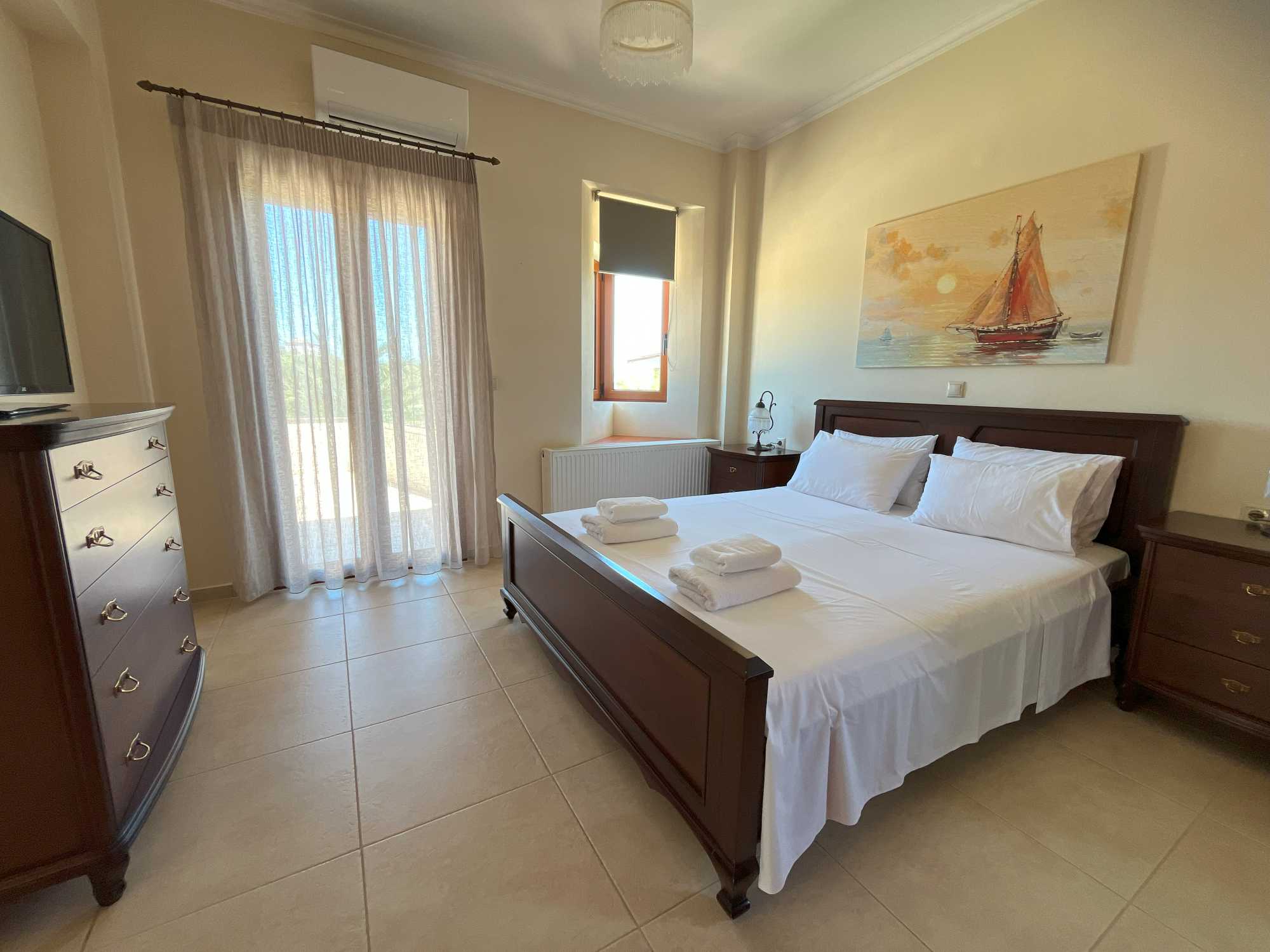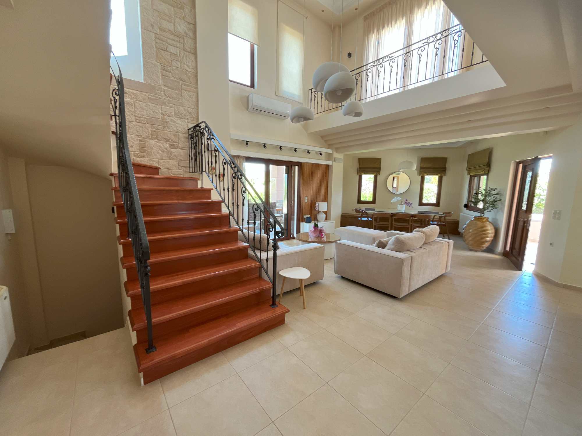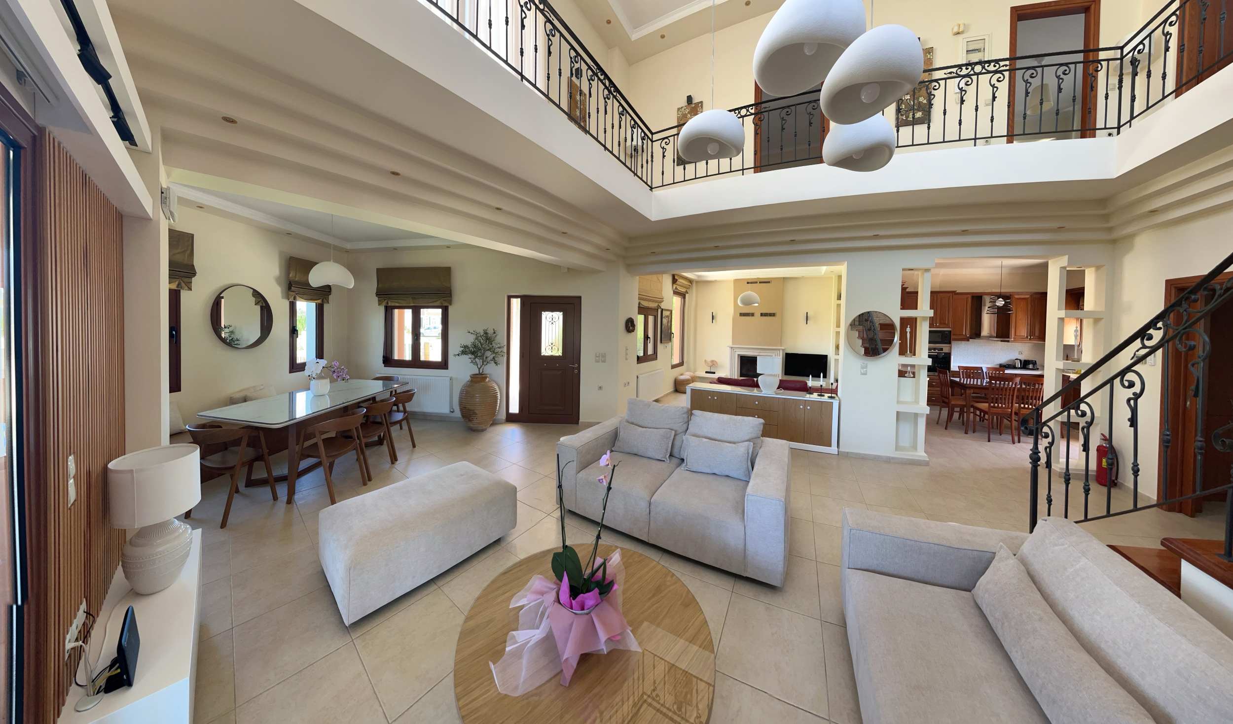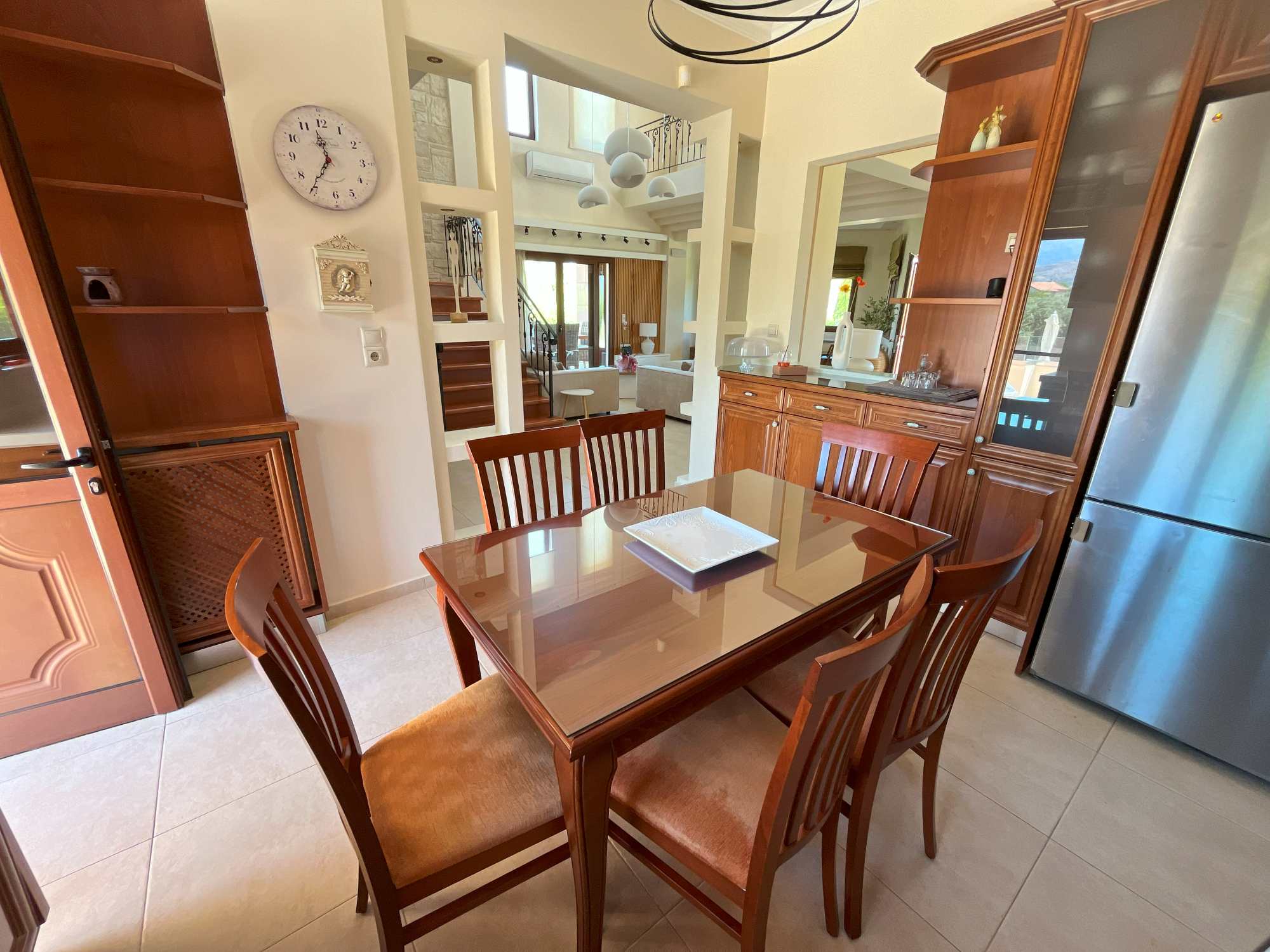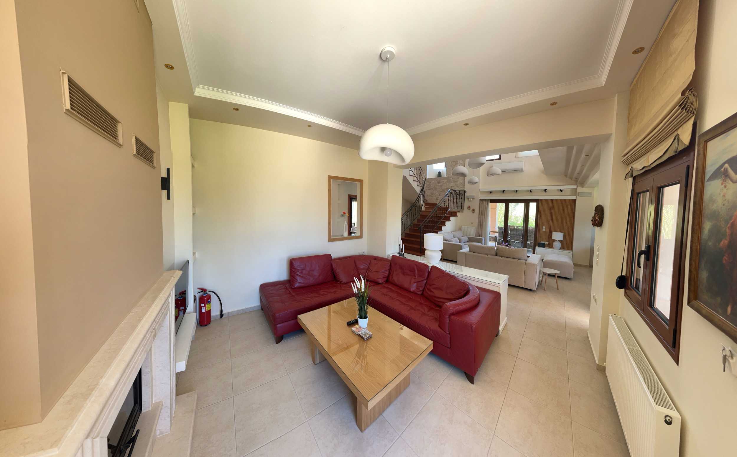 Modern comfort and energy efficiency are priorities throughout this high quality villa villa for sale in Chania Crete. Central oil heating keeps the home warm year-round, while solar panel provides hot water. Air conditioning units are strategically placed for optimal cooling, and the energy-efficient wood burning fireplace adds both warmth and traditional charm. The basement storage offers practical space with potential for customization based on your lifestyle needs. It comes fully furnished and equipped, ready to move in.