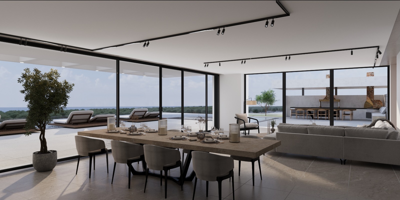 This exceptional villa for sale in Akrotiri Chania Crete is a luxurious two-level residence. Spanning 250 m² and situated on a generous 2,050 m² plot, the property offers modern design, stunning sea views, and premium living in the tranquil area of Agios Onoufrios.