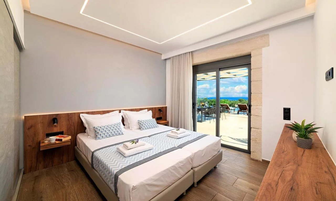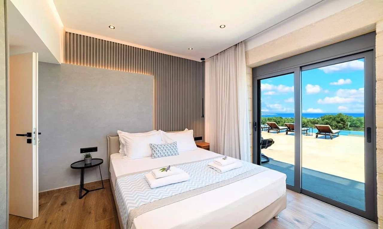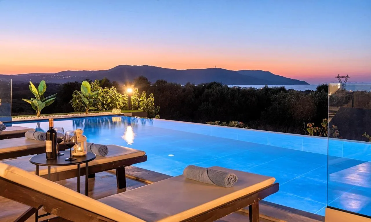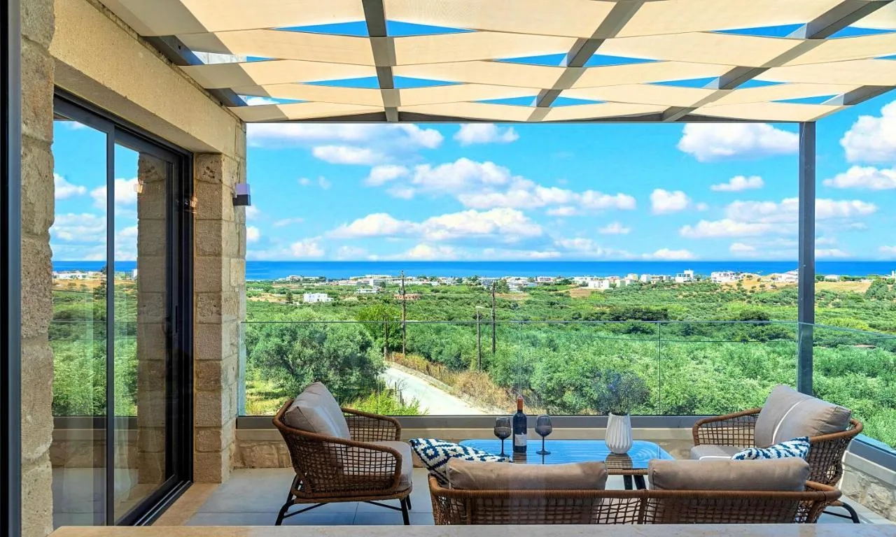 The property boasts a private swimming pool surrounded by lush gardens and breathtaking views. This villa with sea views for sale in Chania Crete features spacious terraces and panoramic windows providing wide open sea views, perfect for enjoying spectacular sunsets. The completed villa showcases modern décor and premium amenities designed for ultimate comfort and relaxation.