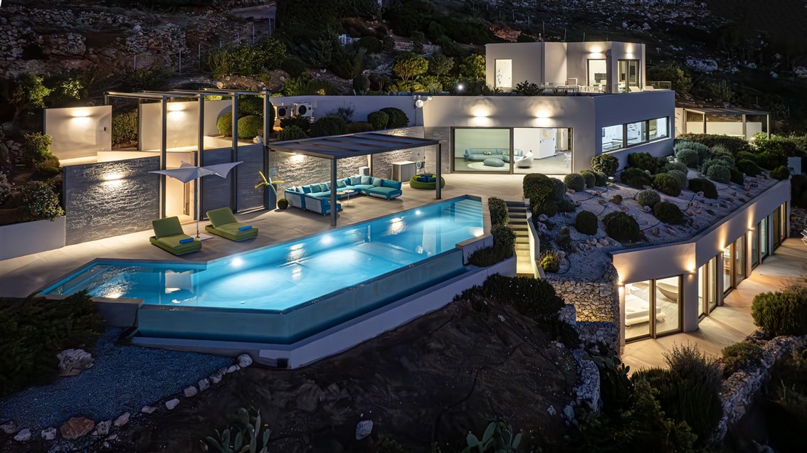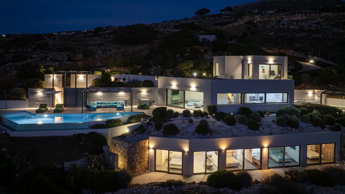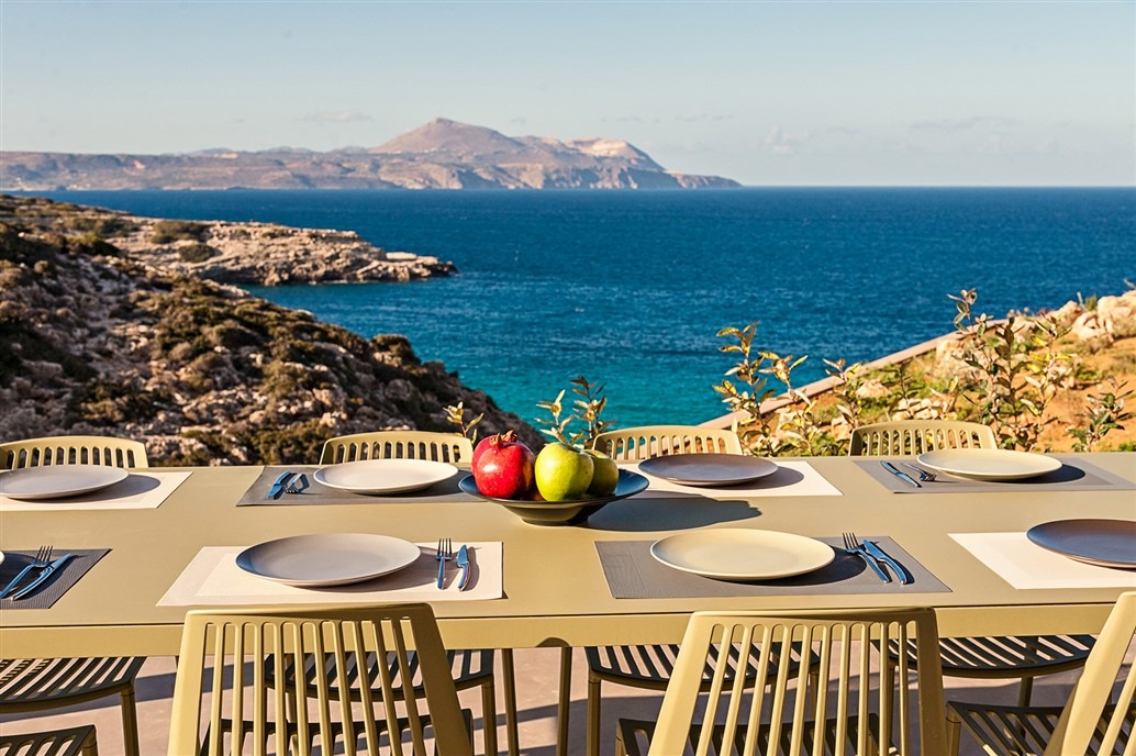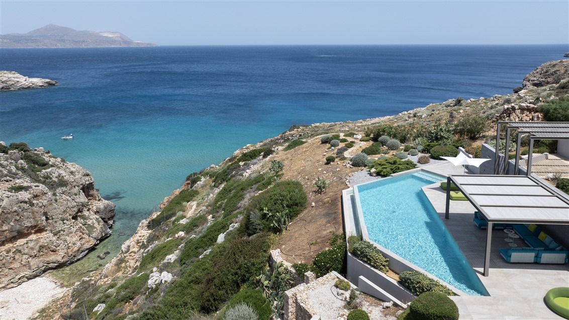This exceptional seafront villa for sale in Chania Crete is perched majestically above a secluded cove on Crete’s northwest coastline. This villa includes 290 m² across three elegant levels within 4,000 m² of landscaped grounds, offering uninterrupted views of the Cretan Sea and White Mountains. With direct beach access, absolute privacy, and cutting-edge smart technology, this seafront villa for sale in Chania Crete is a sanctuary of light and serenity.