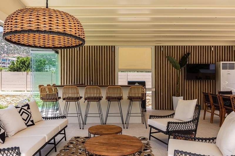 With luxurious interiors spanning 400 m² over two floors, this retreat features 6 bedrooms, 7 bathrooms, and spacious living areas. The interiors combine modern luxury and traditional elegance, with Venetian arches, stone walls and carefully selected wooden furniture.