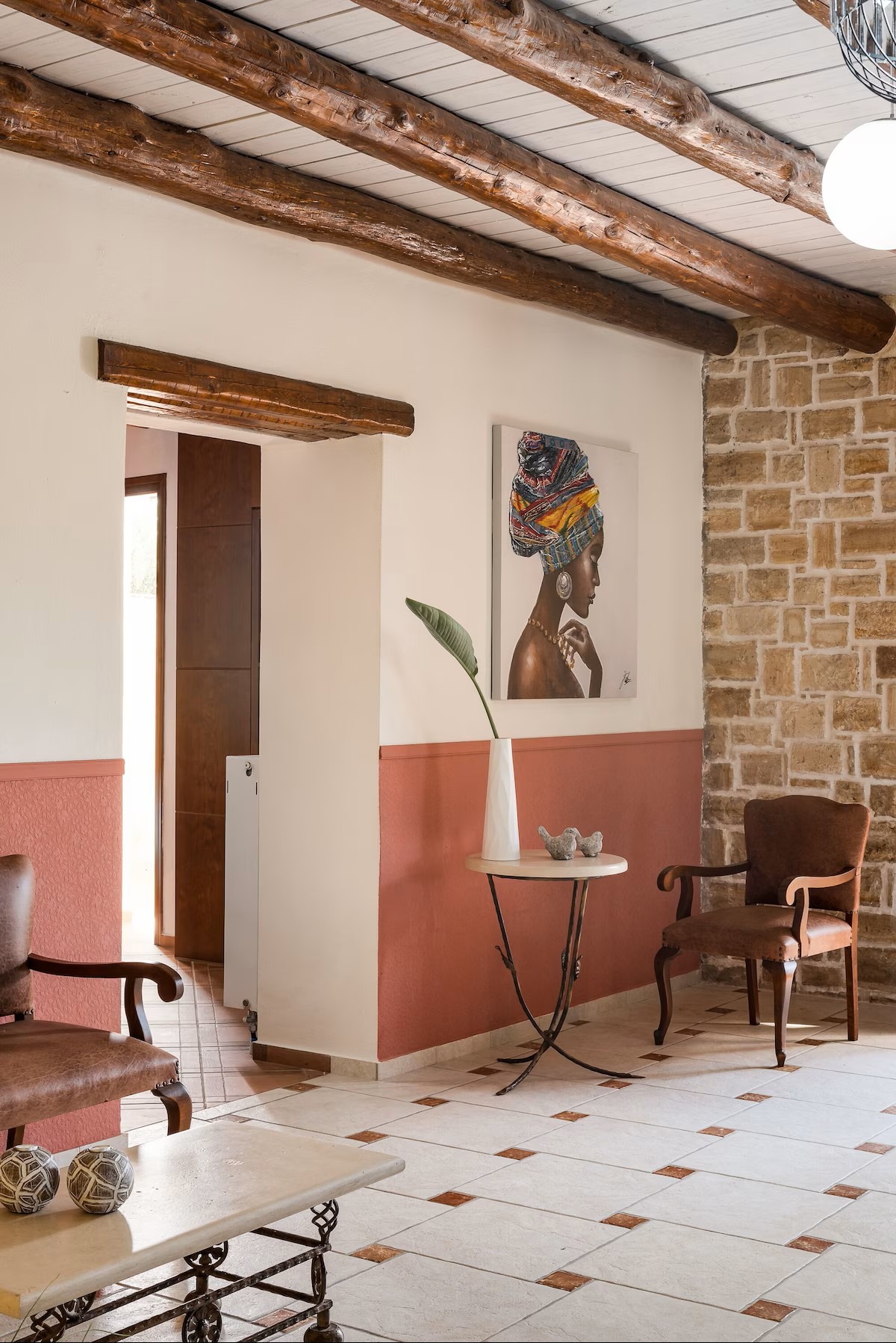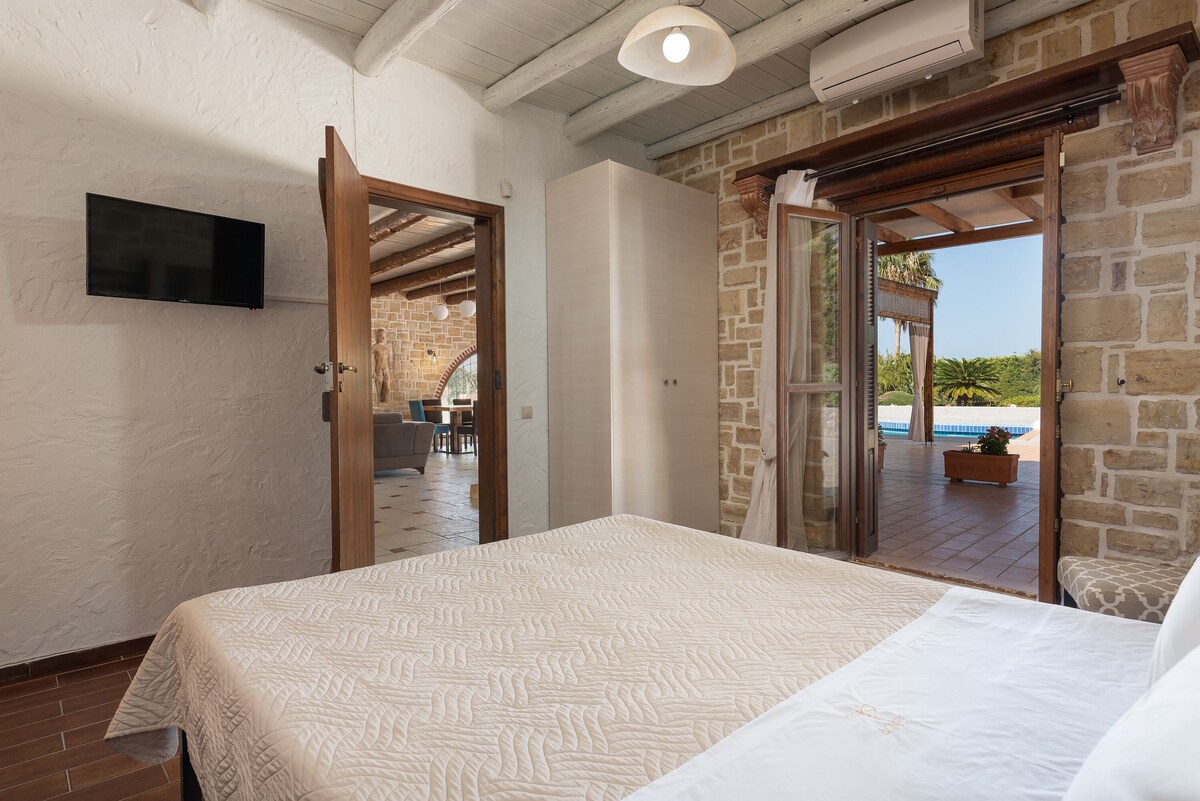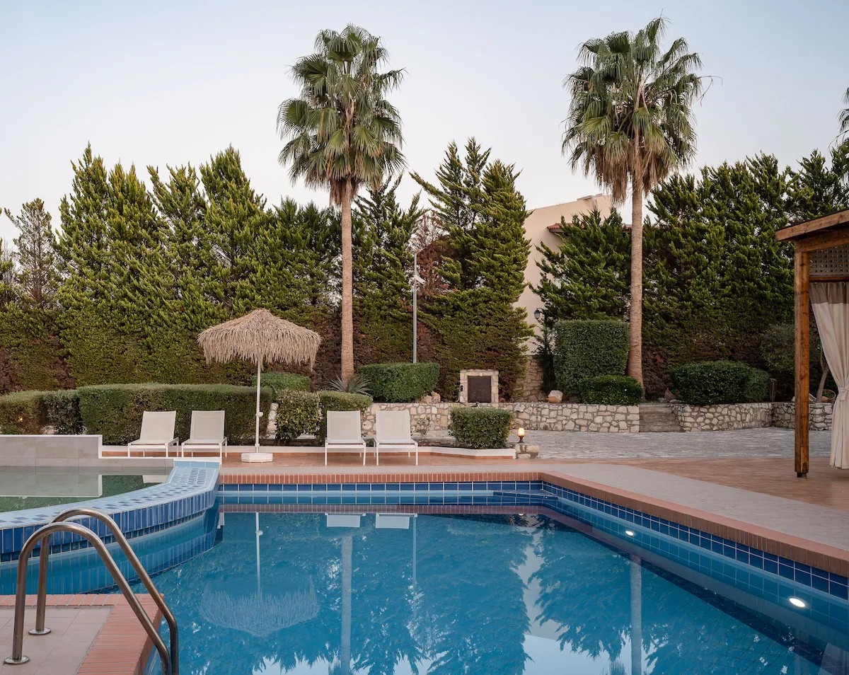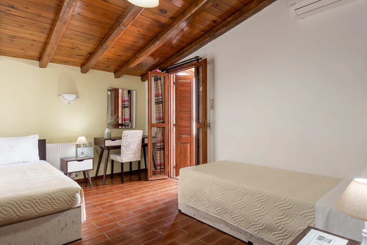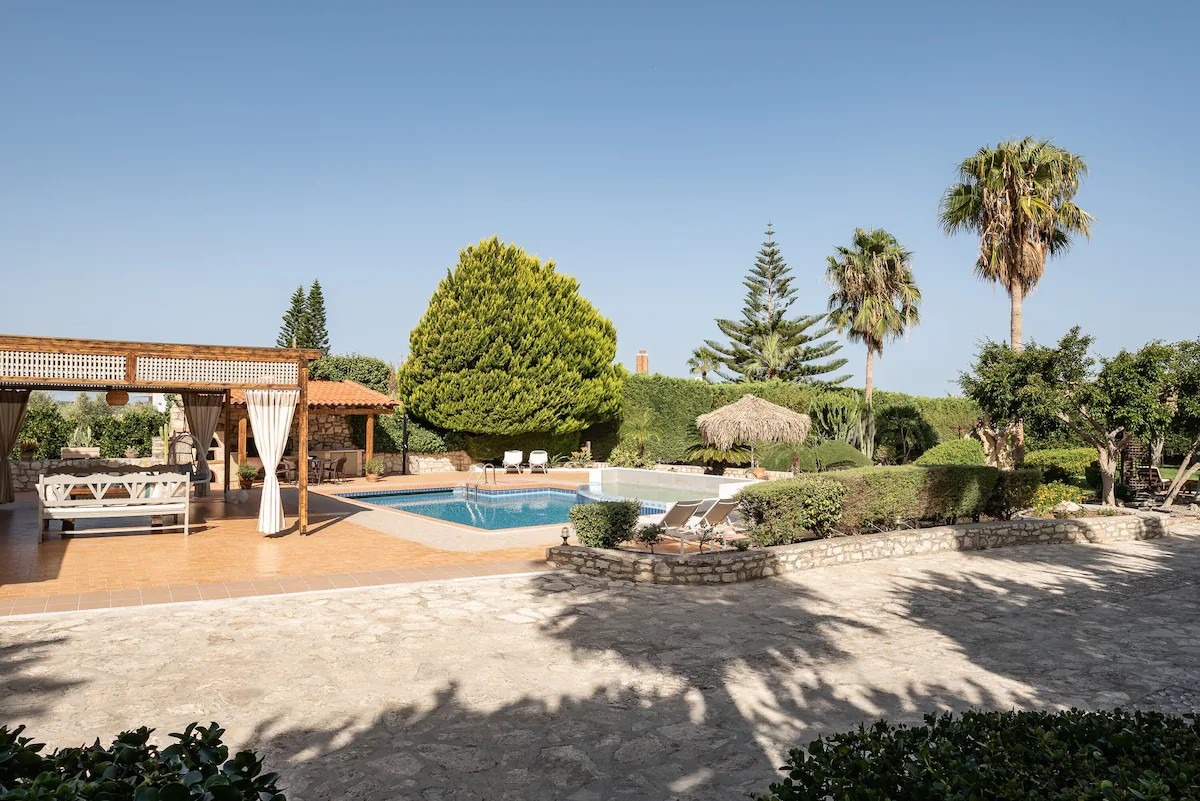 This beautifully crafted stone mansion features four elegantly designed bedrooms, open-plan living spaces with natural light, and authentic wooden ceilings that showcase traditional Cretan architecture.