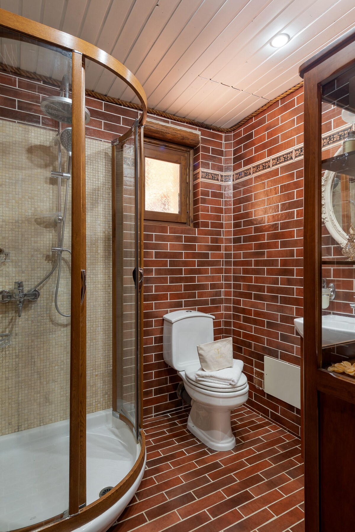First Floor: Double bedroom with en-suite, two twin bedrooms with wooden ceilings, shared bathroom