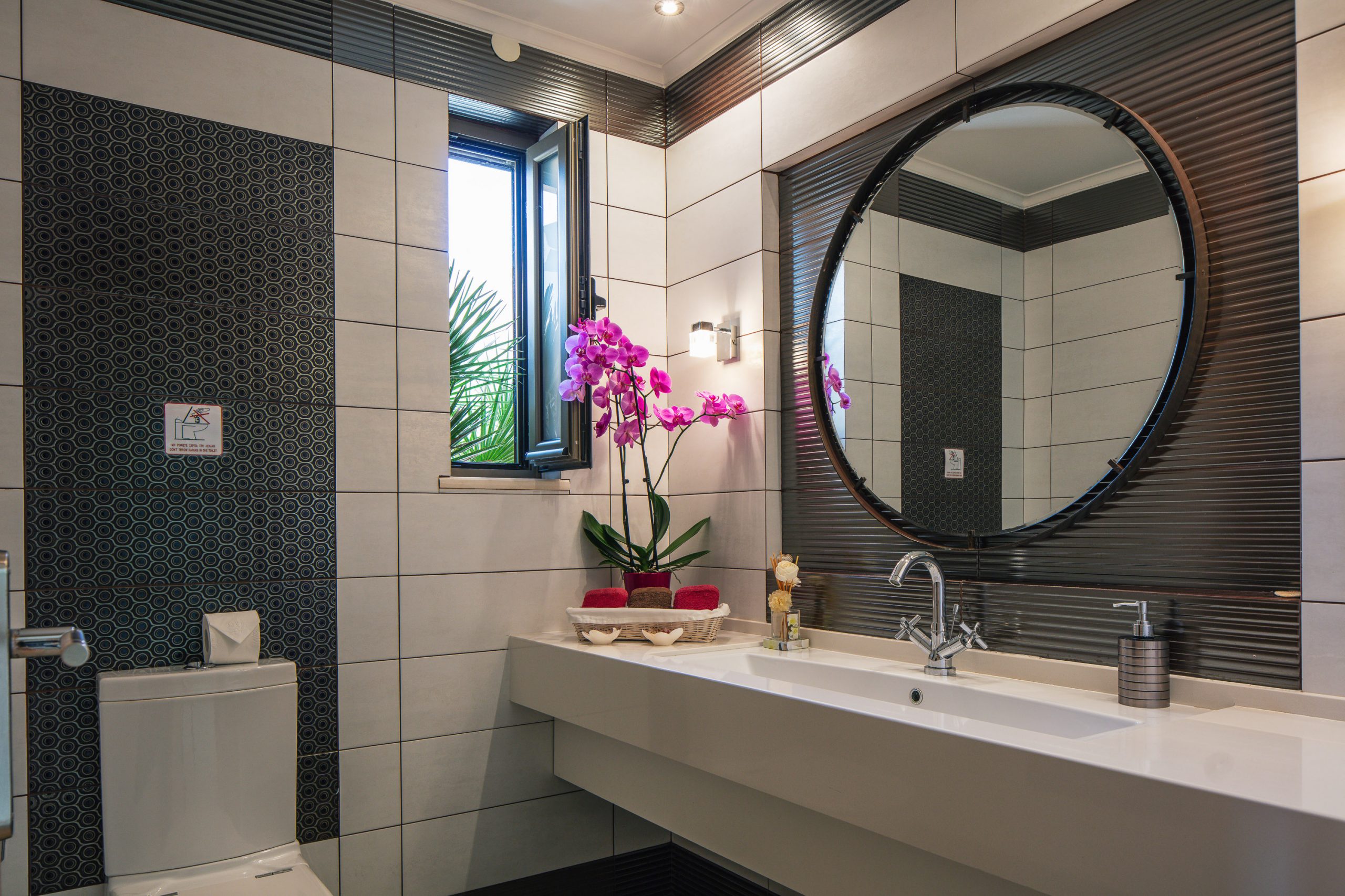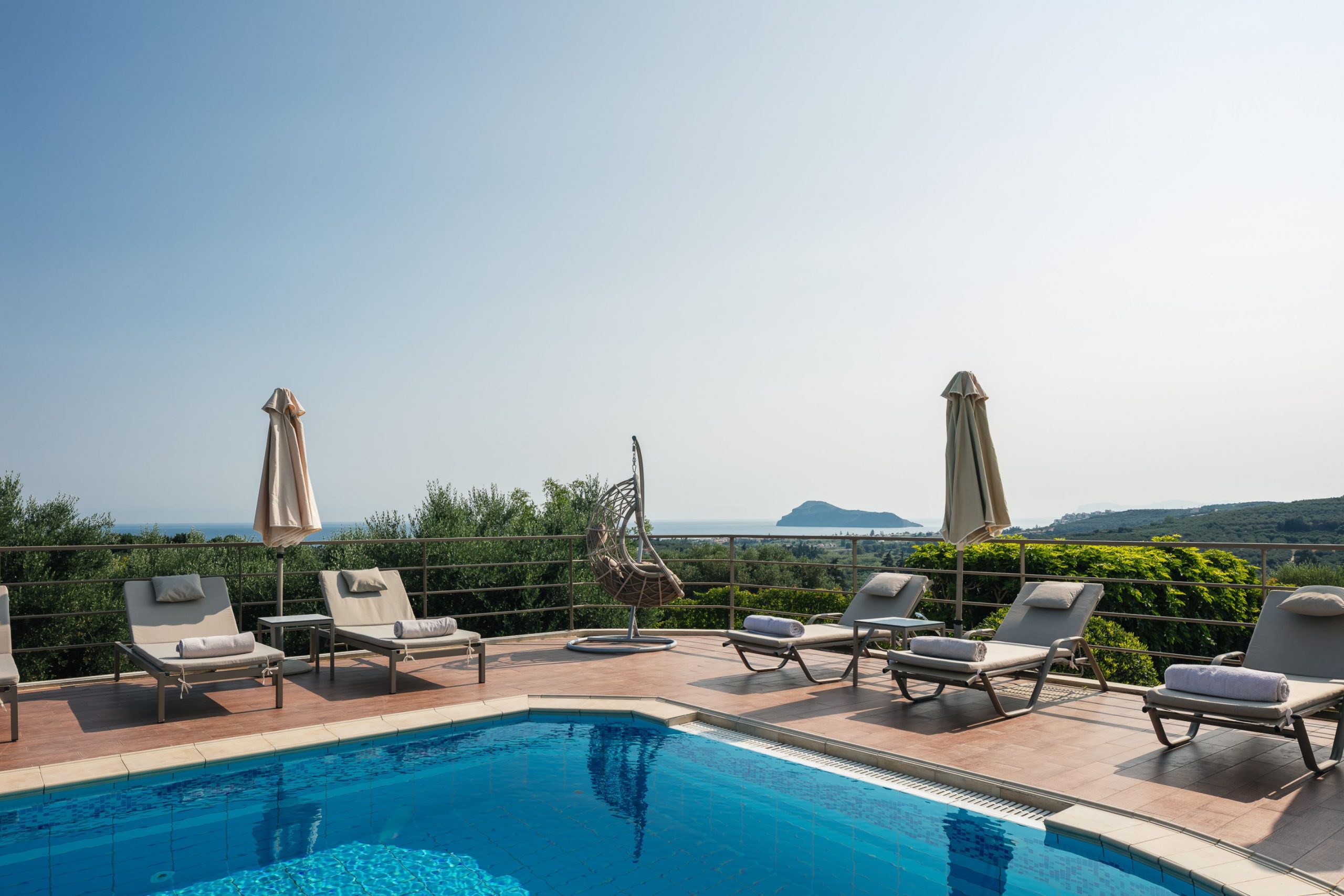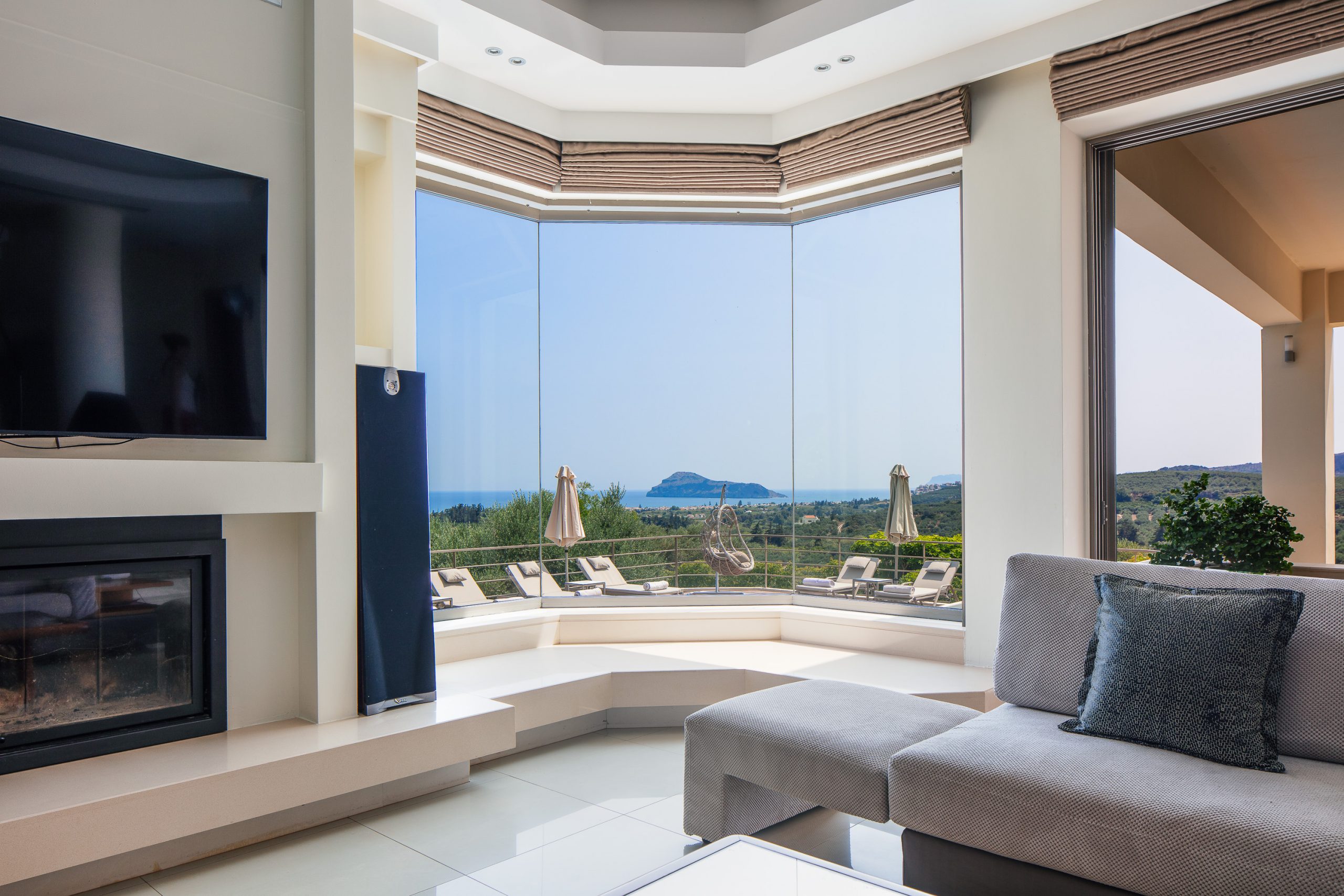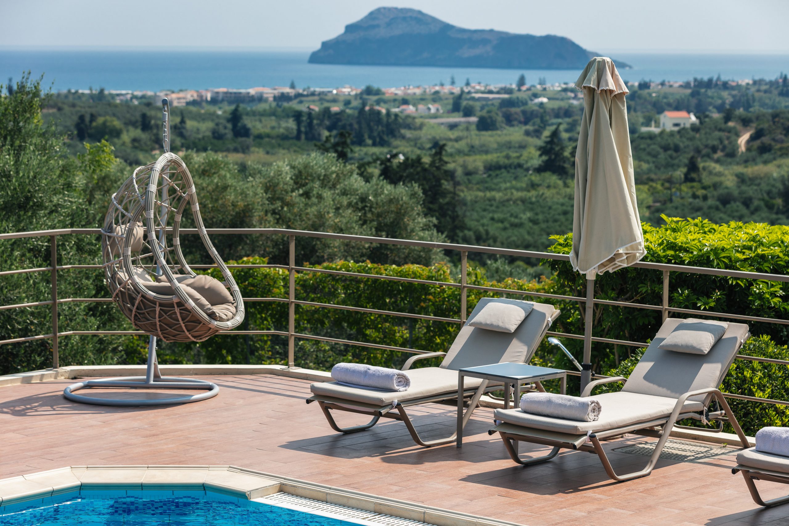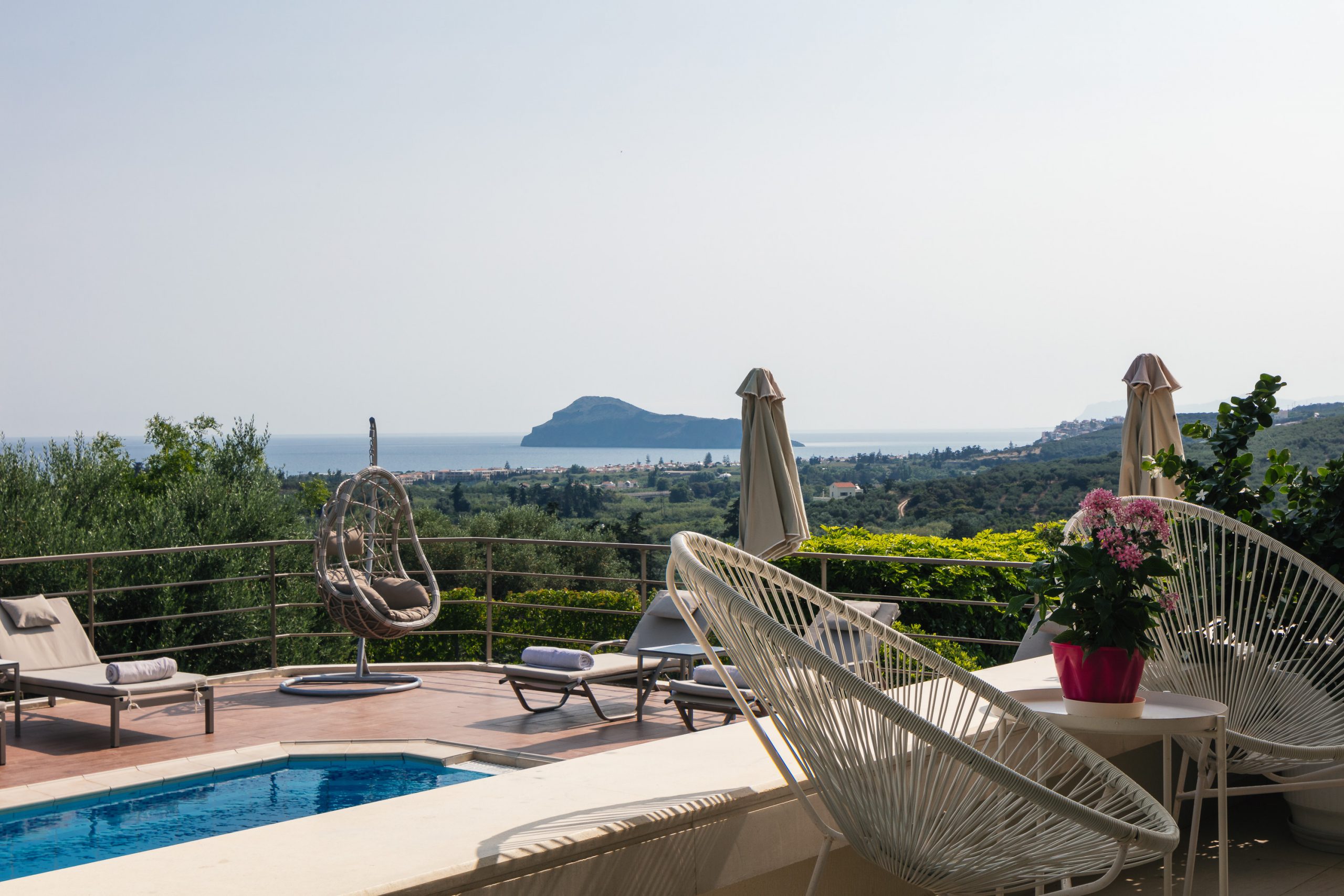 This modern villa in Platanias Chania Crete for sale has been built among the olive trees in an elevated spot with views of the sea that can never be lost. It enjoys the total living space of 520m2 on a plot of land of 2800m2 and consists of 6 bedrooms and 6 bathrooms on 3 levels.