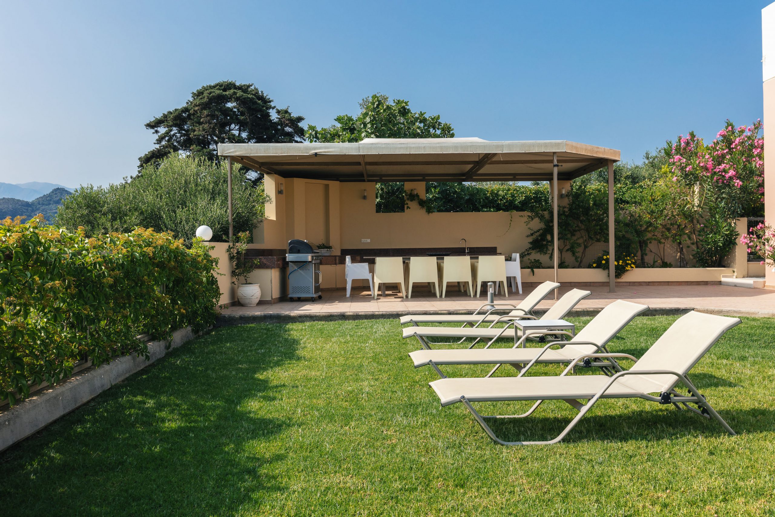 The facilities include a 35 sq. m heated swimming pool, and mature garden with different plants and fruit trees. There is a fully equipped charcoal and gas barbecue area under the pergola with 2 external pergola covered dining areas. A variety of different entertainment spots can be also found in the veranda and the gardens around the villa. Additionally, there is also a parking space that can fit up to 5 cars.
