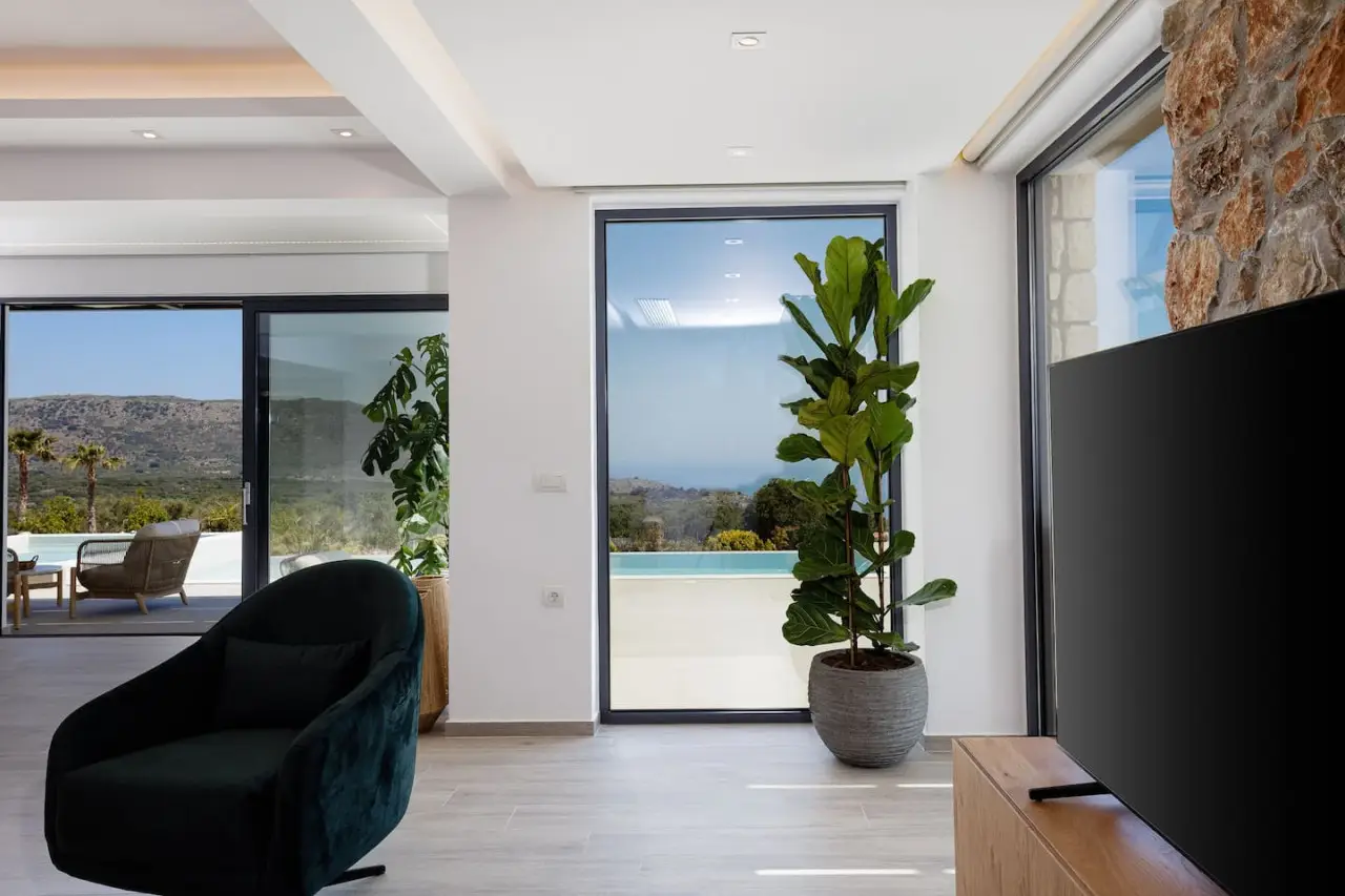 Modern conveniences include air conditioning and heating throughout, solar water heating, high-speed Wi-Fi, Smart TV, security cameras, and energy-efficient windows. Beyond being a dream residence, this stone villa in Kefalas Chania Crete for sale represents a compelling investment opportunity. Currently operating successfully as a luxury holiday villa with strong occupancy rates and attractive rental yields, it’s one of the region’s most desirable properties.