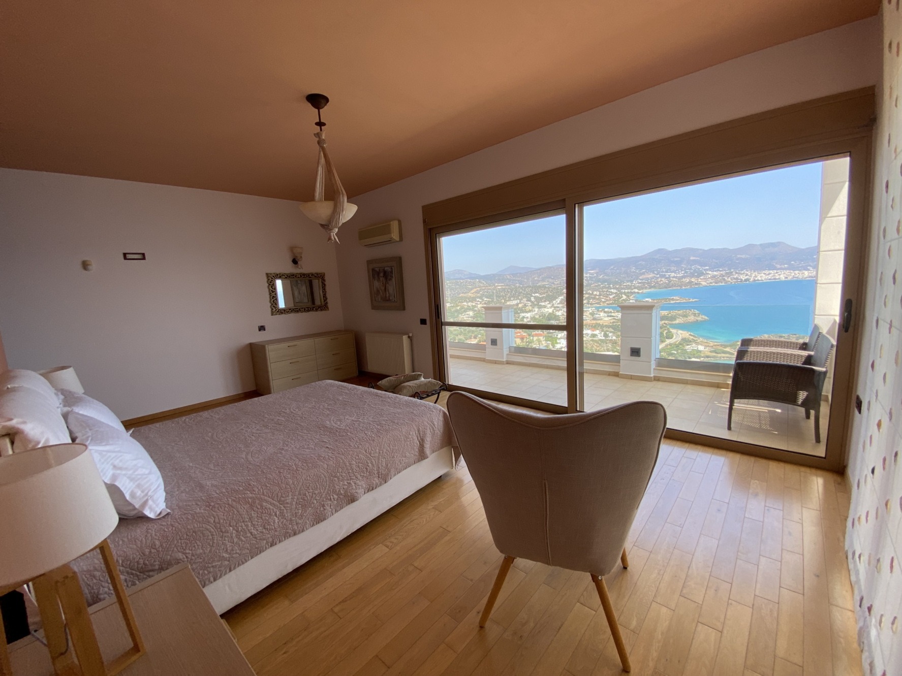 This is a stunning sea view villa for sale in Agios Nikolaos Crete expanding on a 340m2 surface, and developed on a 3300m2 plot of land. It is situated a mere 300 meters from the sea, and enjoys a convenient location, just 4km away from the picturesque town of Agios Nikolaos and just 69km from Heraklion International Airport. This exquisite property was built in 2010 and offers expansive and unobstructed views of the breathtaking Mirabello Bay and the mountains.